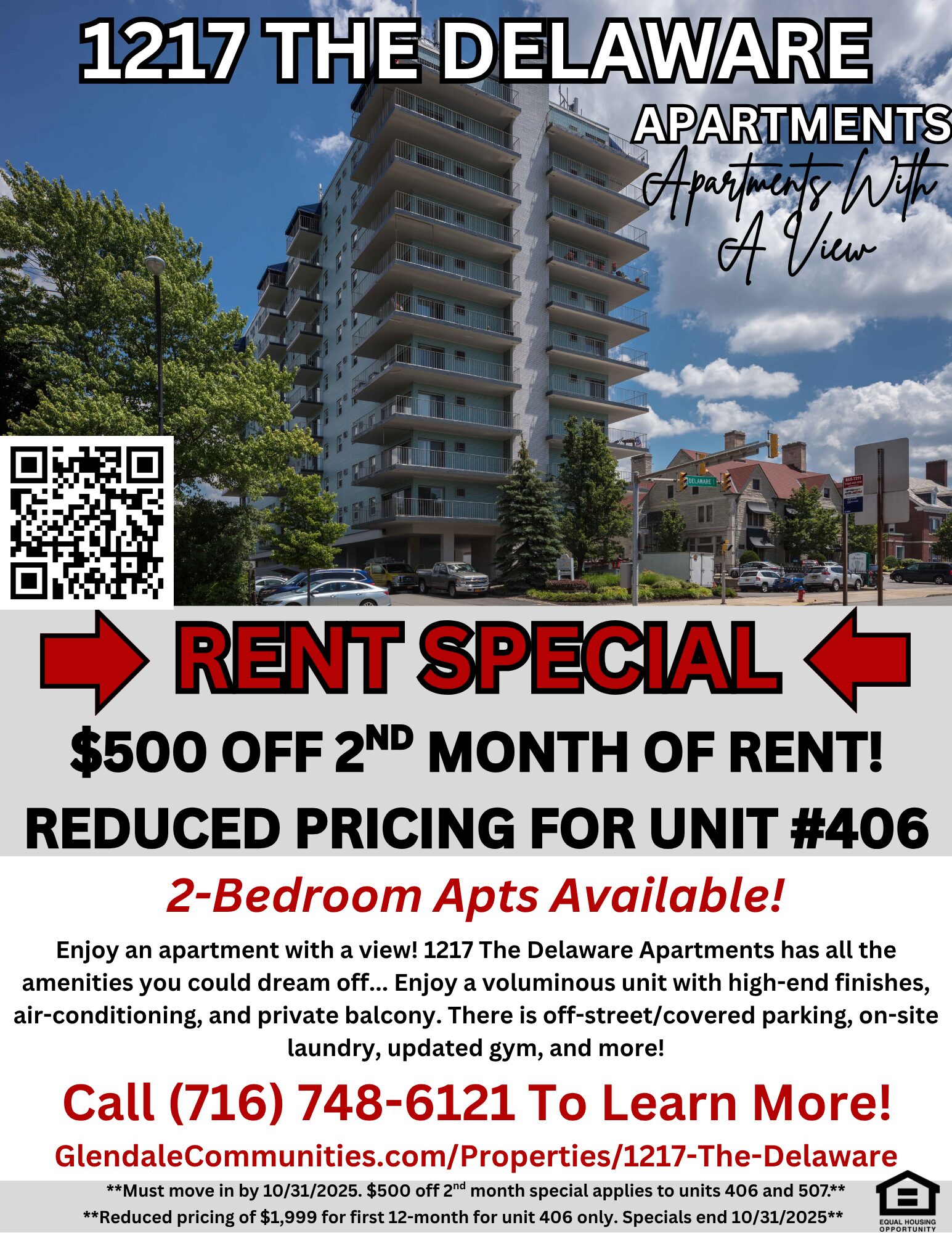 Don’t miss your opportunity to live in style. These one-of-a-kind apartments for rent will elevate your living experience. Reach out to Glendale Communities’ Buffalo Leasing Office now to learn more about 1217 The Delaware.