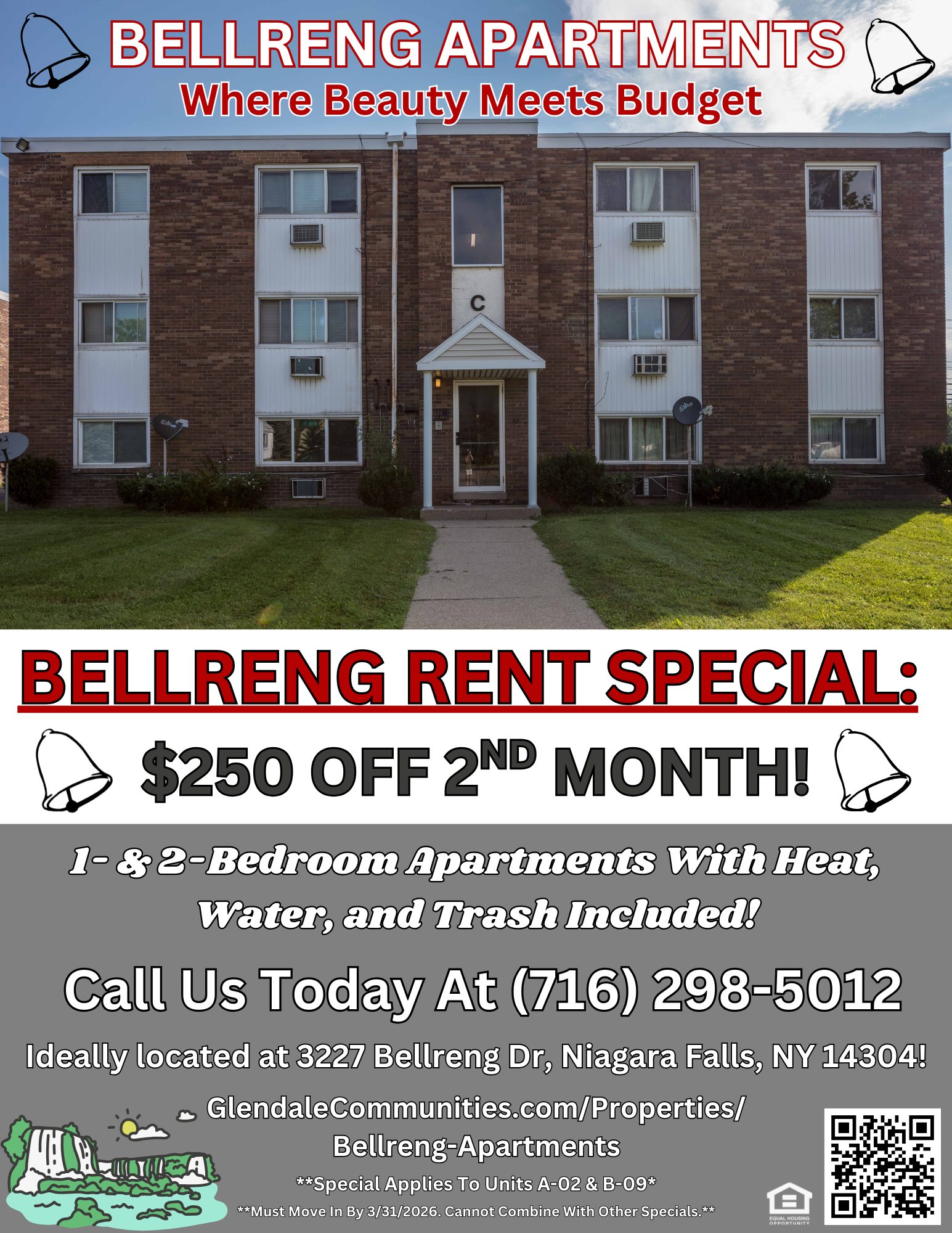 If you are looking for a modern apartment at a low price, Bellreng is right for you! Please contact our Niagara Falls Leasing Office at (716) 298-5012 to learn more or to schedule a tour. It is time to ring the bell and live comfortably.