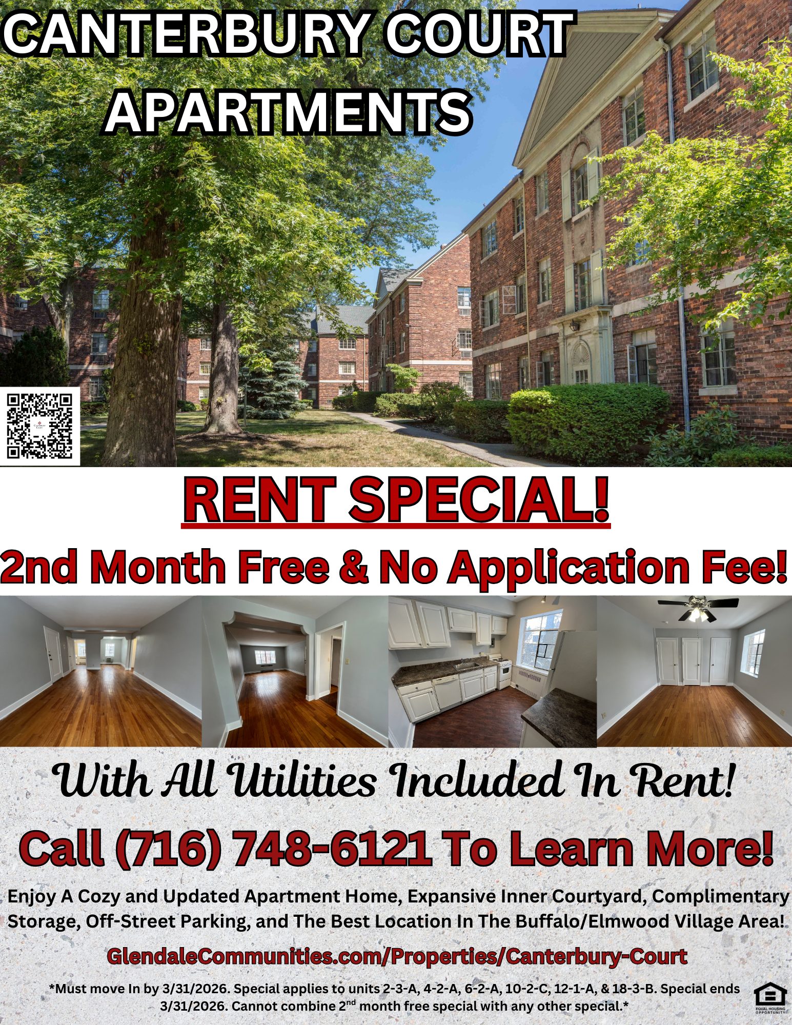 Don’t miss your opportunity to live at Canterbury Court. We offer in-person showings, and we are happy to answer any questions you have. These Elmwood Village Buffalo apartments go fast!