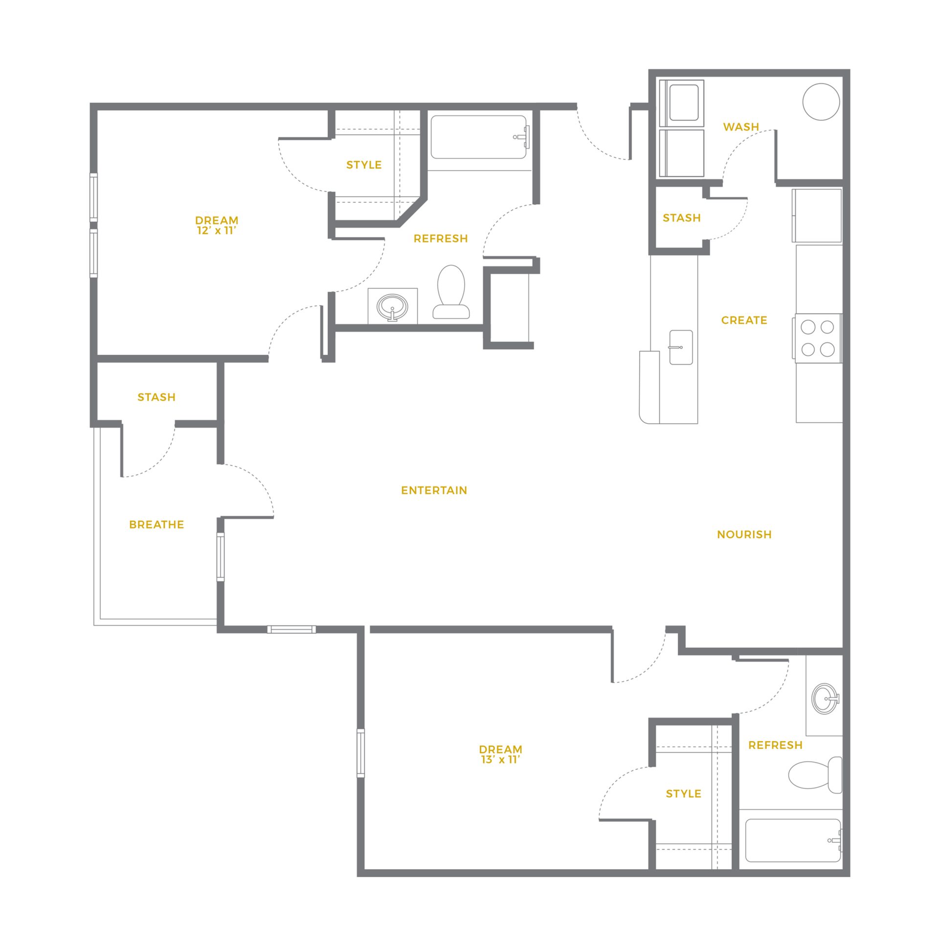 • Spacious Layouts (1,076 - 1,153 SQ FT)