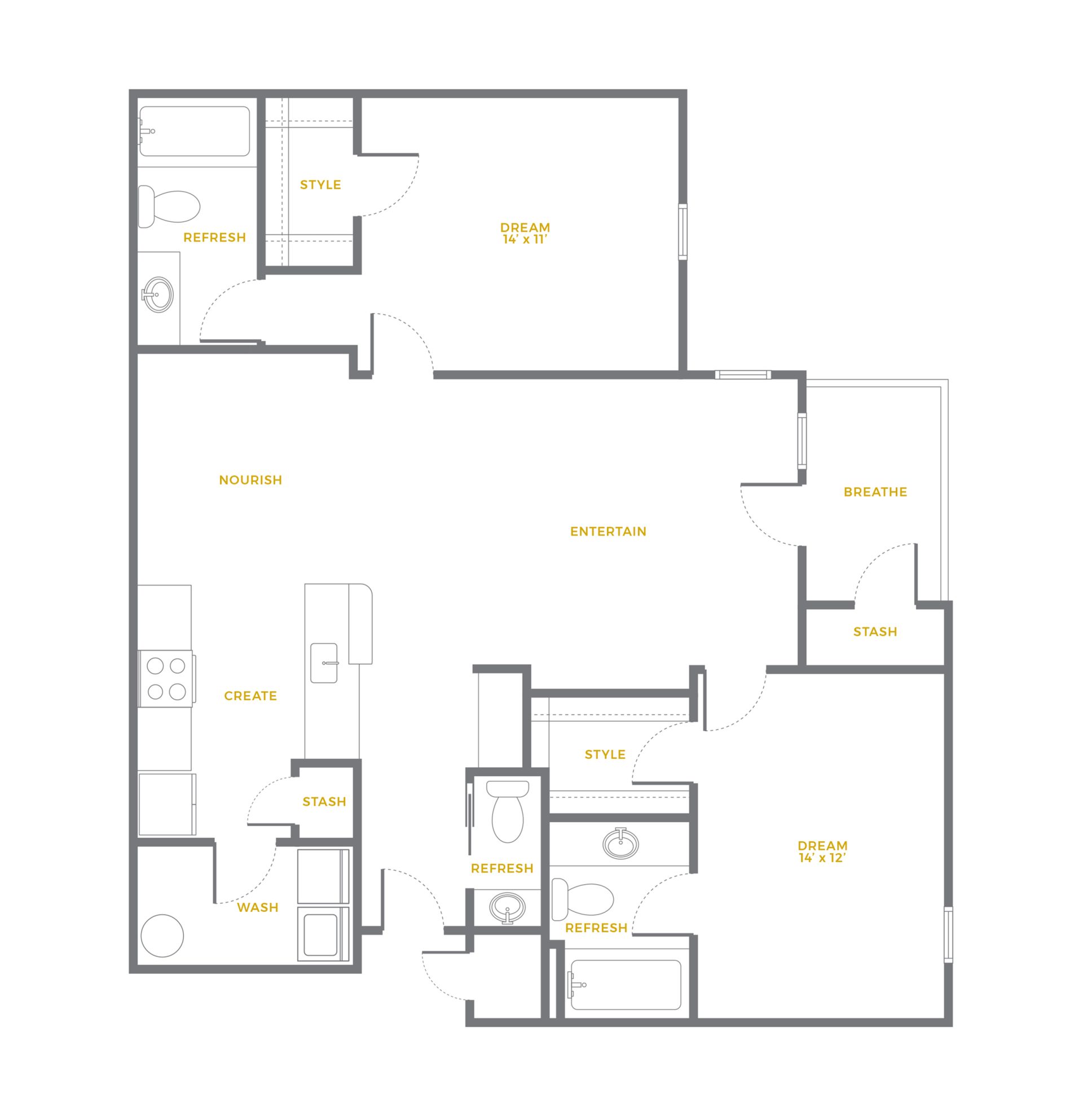 • 2-Bed / 2-Bath (1,076 SQ FT): Starting at $1,199
