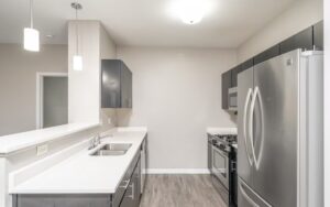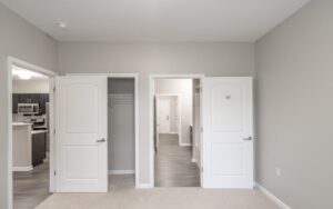 What exactly makes Muir Lake so luxurious? Well, our apartment layouts are immensely spacious and there is so much closet space. However, that is not all! At Muir Lake you can enjoy quartz countertops in the kitchen, stainless steel appliances, beautiful finishes throughout the home, a secure intercom and key fob entry into the building, in-unit laundry with access to you own washing machine and dryer, off-road parking, and so much more! We also offer storage and garages for a premium.
